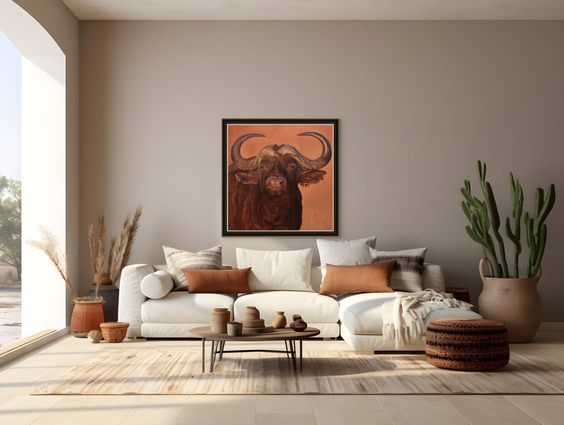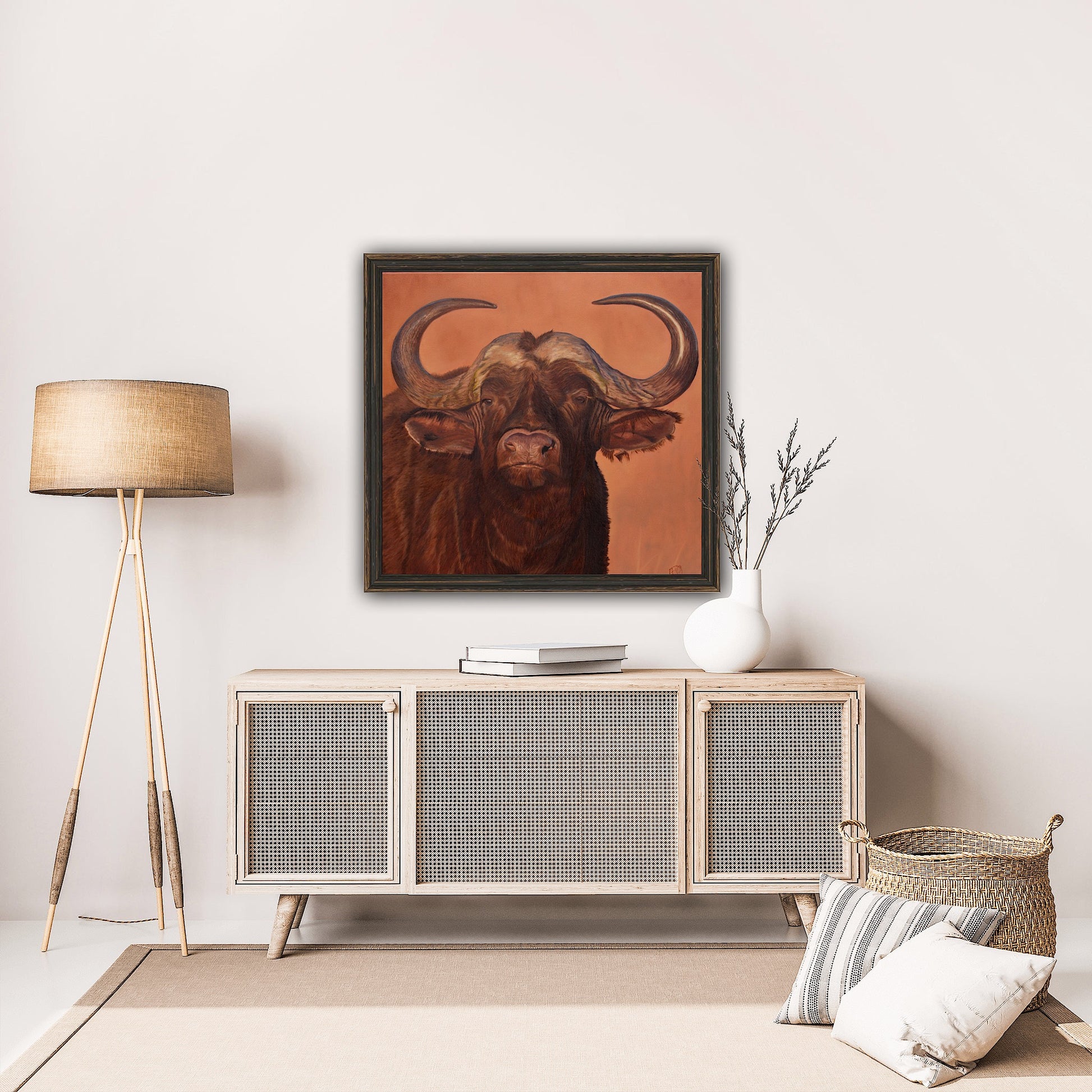 Dit schilderij vertelt het verhaal van een dier dat door geen enkele kracht wordt gebroken, een icoon van veerkracht in een wereld vol uitdagingen.